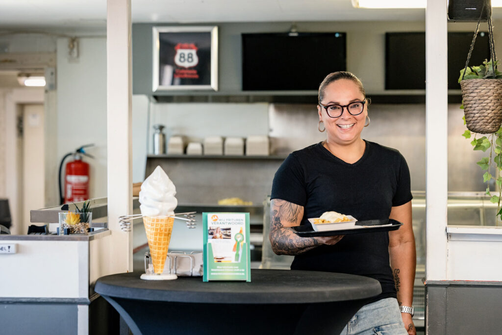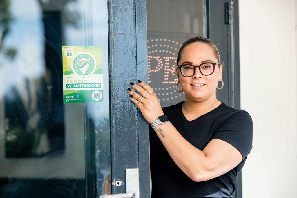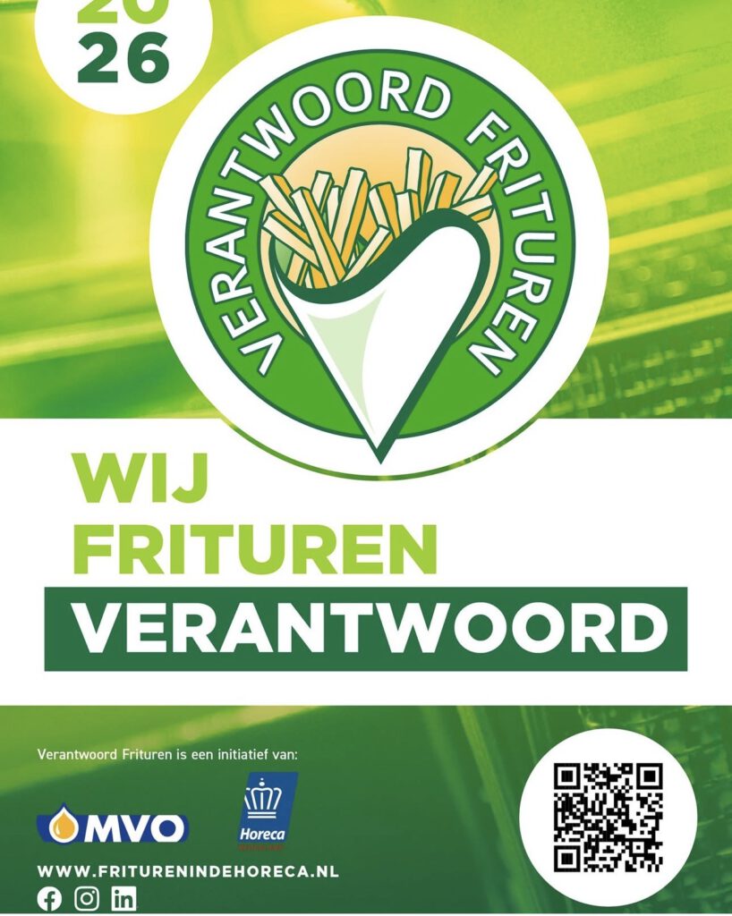 Wij bakken in plantaardige frituurolie. En dat is niet voor niets! Vloeibare vetten bevatten meer goede, onverzadigde vetten en geven je friet een lekkere smaak. Dat voelt toch nét wat prettiger, voor wie bakt én voor wie ervan geniet. Ons keurmerk staat met trots op onze voordeur.